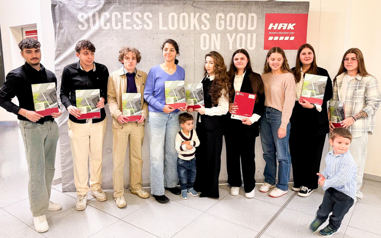 Letzte Woche Donnerstag gab es dann allen Grund zu feiern: Von den 12 Kandidat:innen, die diesmal angetreten sind, schafften 9 alle Prüfungen vom Herbsttermin, eine Kandidatin war leider bei einer schriftlichen Prüfung erkrankt und wird diese daher erst beim nächsten Termin ablegen können und zwei weitere Kandidat:innen müssen jeweils noch eine Prüfung ablegen, drei haben sie aber schon geschafft! Letzte Woche Donnerstag fand die Überreichung der Zeugnisse im feierlichen Rahmen in der Aula unserer Schule statt. Besonders herzlich gratulieren wir Darlin Plursch und und Stephanie Fuxjäger zur mit ausgezeichnetem Erfolg bestandenen HAS Abschlussprüfung und Maira Marques sowie Sophia Sawicki zum guten Erfolg!