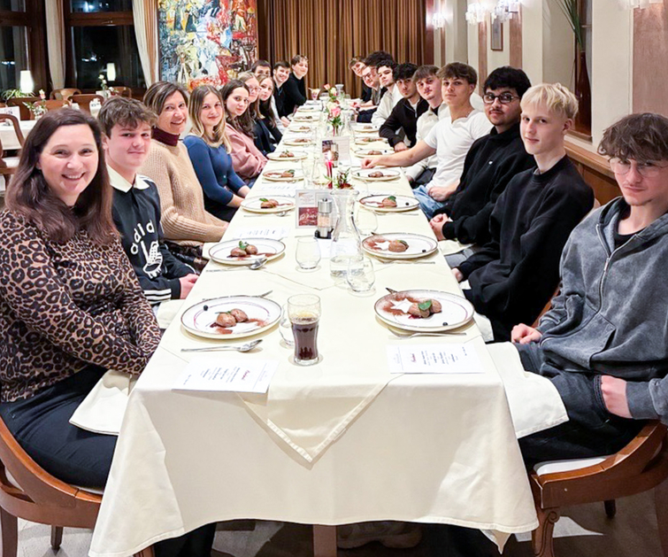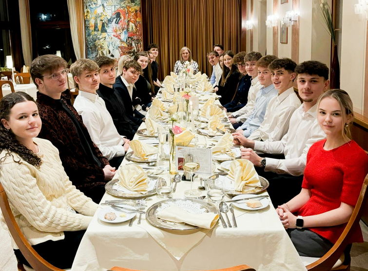 Um eine Vorstellung davon zu bekommen, wie man sich am besten vor Geschäftspartnern bei der Nahrungsaufnahme präsentiert, absolviert man idealerweise ein Probe-Essen unter möglichst realistischen Bedingungen. Das Restaurant im Hotel Minichmayr war schnell als ideale Location für so eine Veranstaltung identifiziert. Ein viergängiges Menü zu schülerfreundlichen Bedingungen – Wasser wurde kostenfrei zur Verfügung gestellt, somit gab es keine Kosten für die Getränke – gehobene Küche, schönes Ambiente und ein freundliches Personal sind die Erfolgskomponenten für so ein Unterfangen.