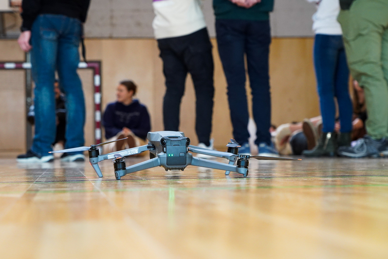 Dabei ging Alex Hinterreiter in einem theoretischen Input zunächst auf die verschiedensten Arten von Drohnen sowie deren Verwendung ein, sprach über Equipment und wies auf wichtige rechtliche Regelungen hin. Anschließend wurde der Turnsaal dafür genutzt, den praktischen Einsatz einer Drohne zu sehen sowie ein paar kreative Fotos und Videos zu erstellen.