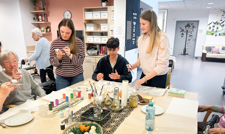 Gemeinsam mit den Leiterinnen des Alten- und Pflegeheims gestalteten wir einen abwechslungsreichen Nachmittag. Es wurden Ostereier bemalt, kreative Mandalas gestaltet und verschiedene Spiele mit den BewohnerInnen gespielt. Dabei entstanden nicht nur schöne Kunstwerke, sondern auch viele nette Gespräche in gemütlicher Atmosphäre bei Kaffee und Kuchen.