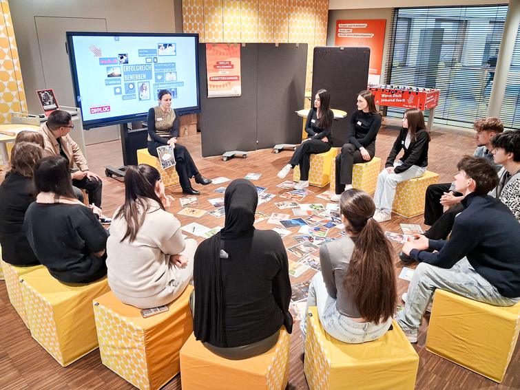 Anfangs galt es mit einer assoziativen Übung die eigenen Stärken zu identifizieren. Wich-tig dabei ist es, authentische Stärken zu finden, die einem vom Mitbewerber unterschei-den. In einer Art Speed-Dating-Verfahren wurden die Schülerinnen und Schüler dann mit klassischen Bewerbungsfragen konfrontiert. Schnell konnte man dabei erkennen, wel-che Fragen einem nach wie vor Schwierigkeiten bereiten könnten. Zum Schluss wurde anhand eines exemplarisch durchgeführten Bewerbungsgespräch die Dos and Don´ts wiederholt.