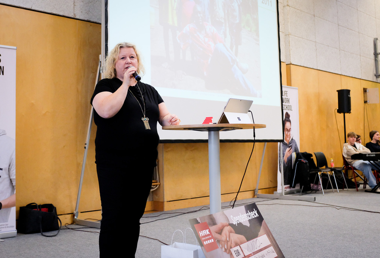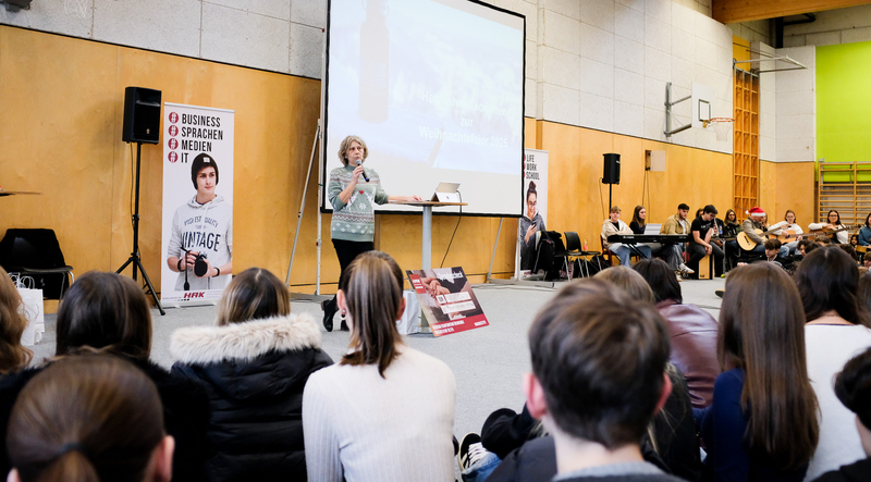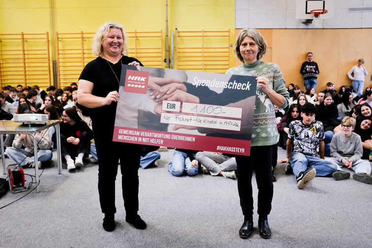 Durch das abwechslungsreiche Programm führte Frau Direktor Wiesmayr, die mit ihren Worten immer wieder den Gemeinschaftsgedanken und den Wert des sozialen Engagements hervorhob. Ein besonderer Höhepunkt der Besuch von Irmgard Edelbauer vom Verein „Go fishnet“, die als Gastrednerin über ihr Hilfsprojekt in Kenia berichtete. Mit großer Dankbarkeit nahm sie die von den SchülerInnen gesammelten Spenden in Höhe von insgesamt 1.100 Euro entgegen. Ein starkes Zeichen der Solidarität und Nächstenliebe in der Weihnachtszeit.