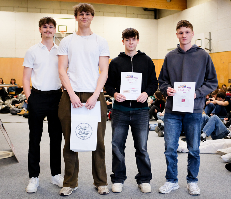 Auch schulinterne Erfolge wurden gefeiert: Die Sieger der Stiegenhaus-Challenge sowie die Gewinner des 1. oberösterreichischen Clash of Clans Turniers wurden feierlich geehrt und erhielten großen Applaus.