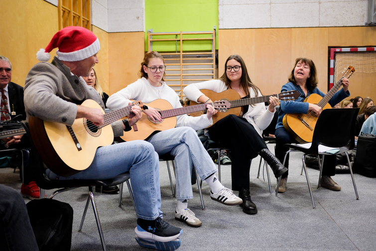 Für die musikalische Umrahmung und echte Weihnachtsstimmung sorgten Dominik Kerschbaumer, Michael Niederhuber, Lina Wiedemann und Paula Huemer, die den Festsaal mit ihren Beiträgen erfüllten und Feier stimmungsvoll abrundeten.