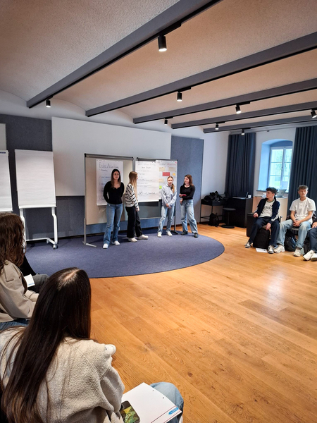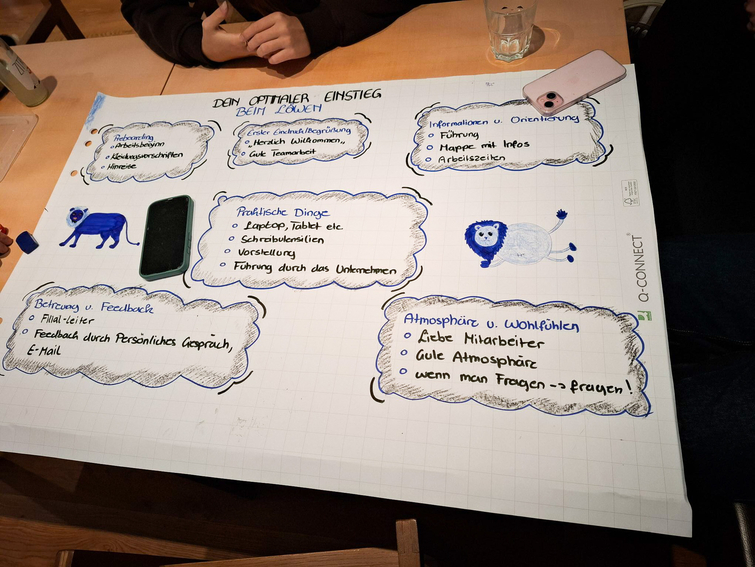 Anschließend mussten wir selbst ans Werk: Motiviert ging es in Kleingruppen an die Gestaltung von Plakaten zum Thema „So stelle ich mir meinen ersten Arbeitstag vor“ – der Kreativität wurden dabei keine Grenzen gesetzt. Nach der Präsentation der Plakate, durften wir unsere Teamfähigkeit in verschiedenen Taktikspielen testen. Schon etwas müde vom ereignisreichen Vormittag, stärkten wir uns danach am reichhaltigen Mittagsbuffet.
